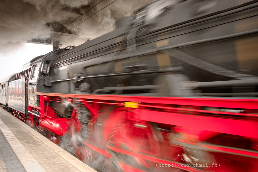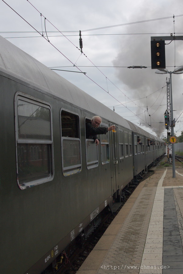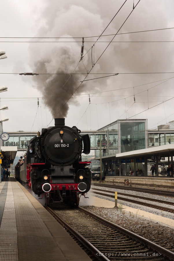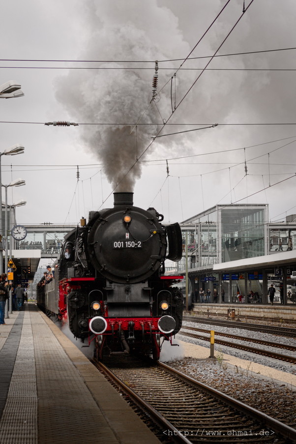 Letzten Samstag hab ich zufällig ein Dampflok bei der Einfahrt in den Bahnhof Regensburg gehört. Nach einer kurzen Suche im Netz war klar, dass ein Dampf-Sonderzug von Nürnberg über Regensburg nach Hof unterwegs war. Anlass war das Jubiläum des letzten planmäßigen Personenzuges mit einer Dampflok von Regensburg nach Hof am 29. September 1973. Und da der Zug in Regensburg noch 20 Minuten Aufenthalt hatte, hab ich schnell meine Kamera gepackt und bin zum Bahnhof.