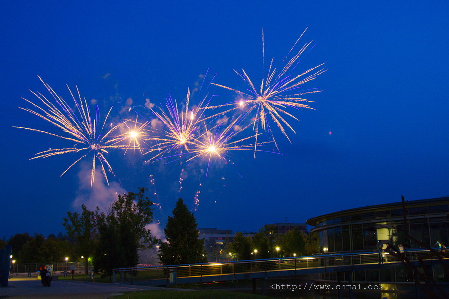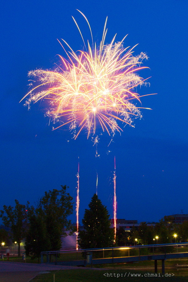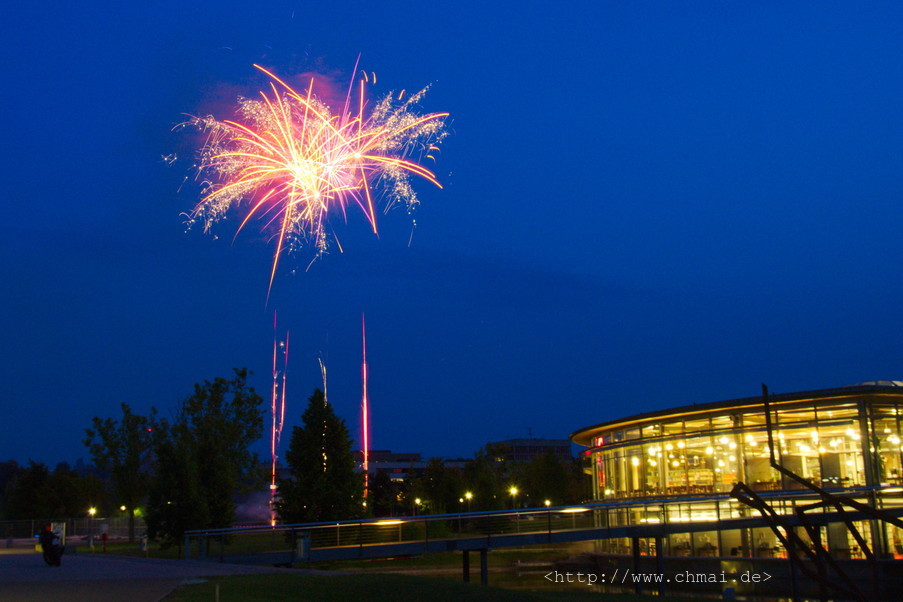 Heute hab ich zufällig kurz vor knapp gesehen, dass fürs Wiwi Sommerfest an der Uni Regensburg ein Feuerwerk aufgebaut wurde. Und weil ich schon lang mal ein Feuerwerk fotografieren wollte bin ich schnell heim, hab den Foto eingepackt und bin gerade noch rechtzeitig zum Feuerwerk zurückgekommen. Hier ein paar Fotos davon.
