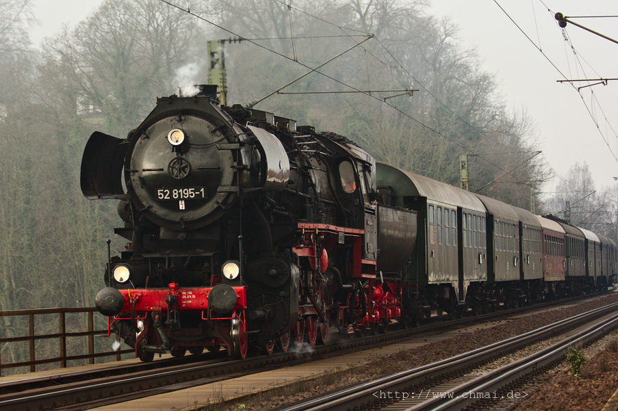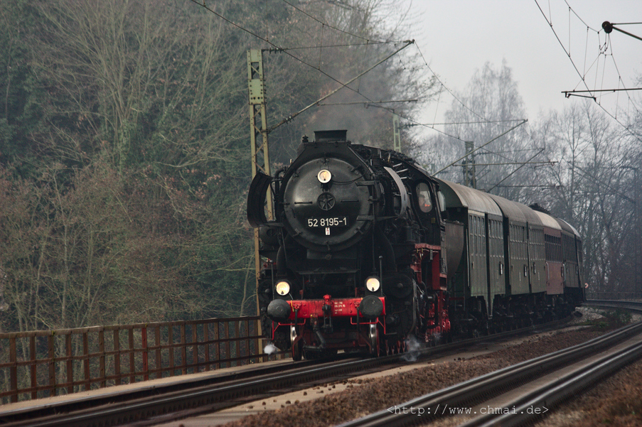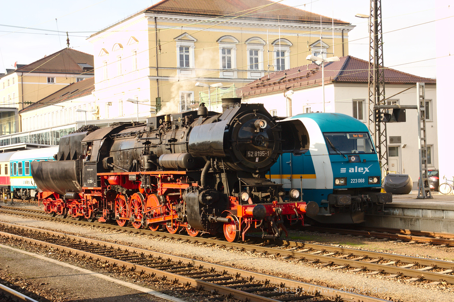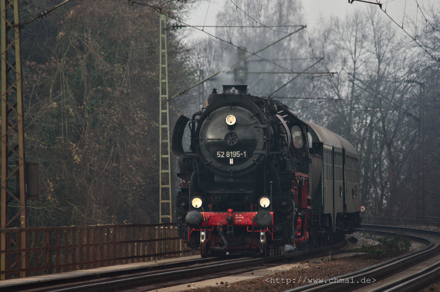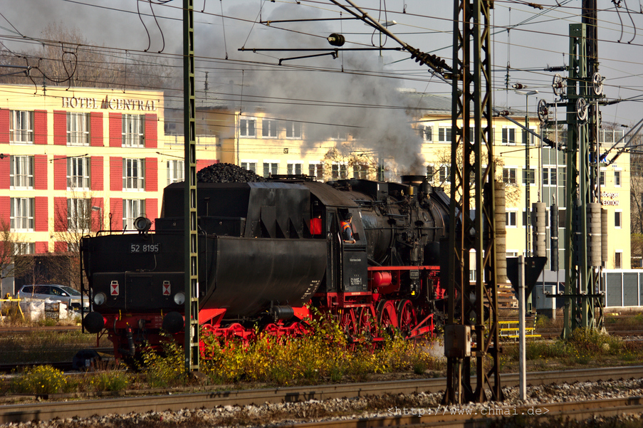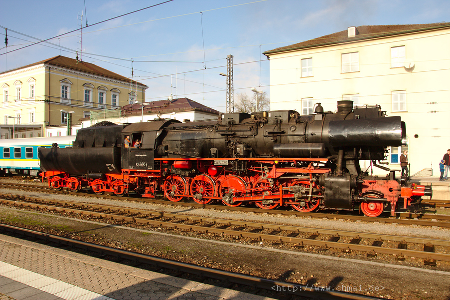 Am 05.12.2015 veranstaltete der Verein Fränkische Museums-Eisenbahn e.V. Nürnberg eine Nikolaus-Dampfzug-Fahrt mit der vereinseigenen Dampflok 52 8195-1. Ziel waren die zahlreichen Weihnachtsmärkte in Regensburg. Und weil Dampfloks ein wunderbares Fotomotiv sind, hab ich die Gelegenheit genutzt und ein paar Fotos gemacht.